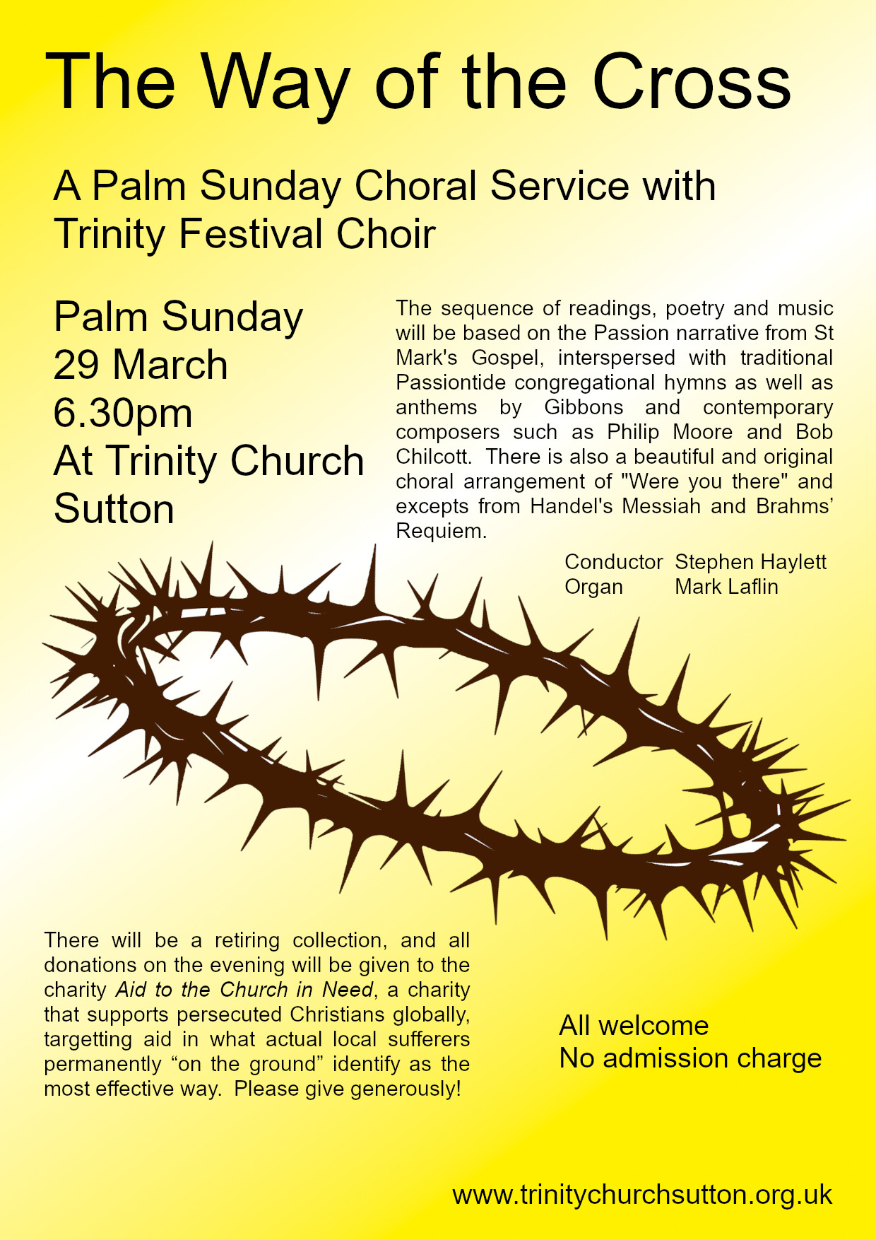 All are welcome to a Palm Sunday Choral Service at Trinity church
